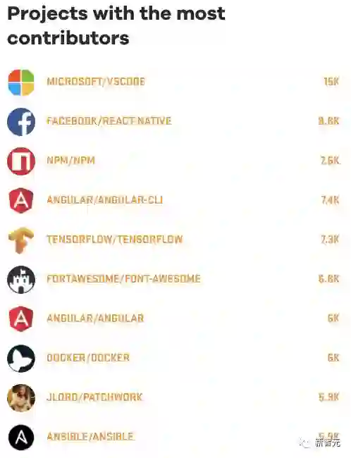 以下是GitHub上最活跃的组织和项目,根据贡献者、fork和comment的数量统计而来。