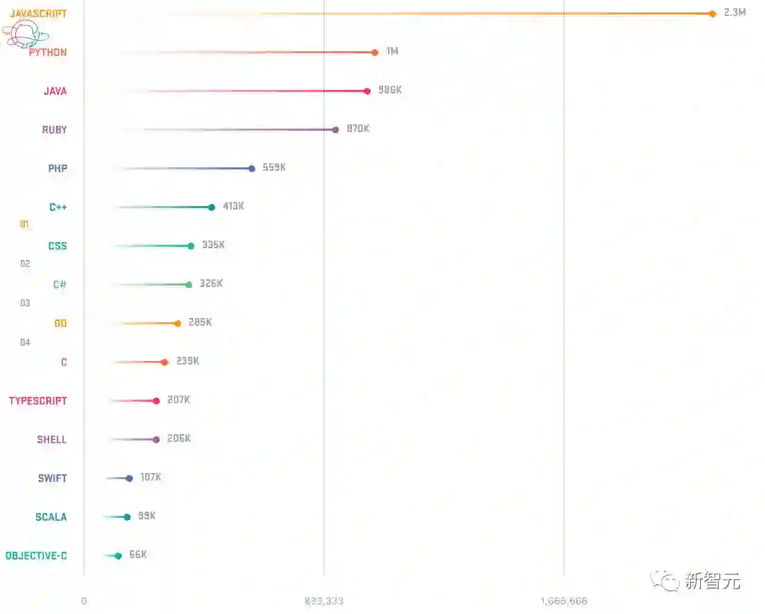 GitHub上的开源项目共使用337种编程语言——JavaScript是使用最多的语言。