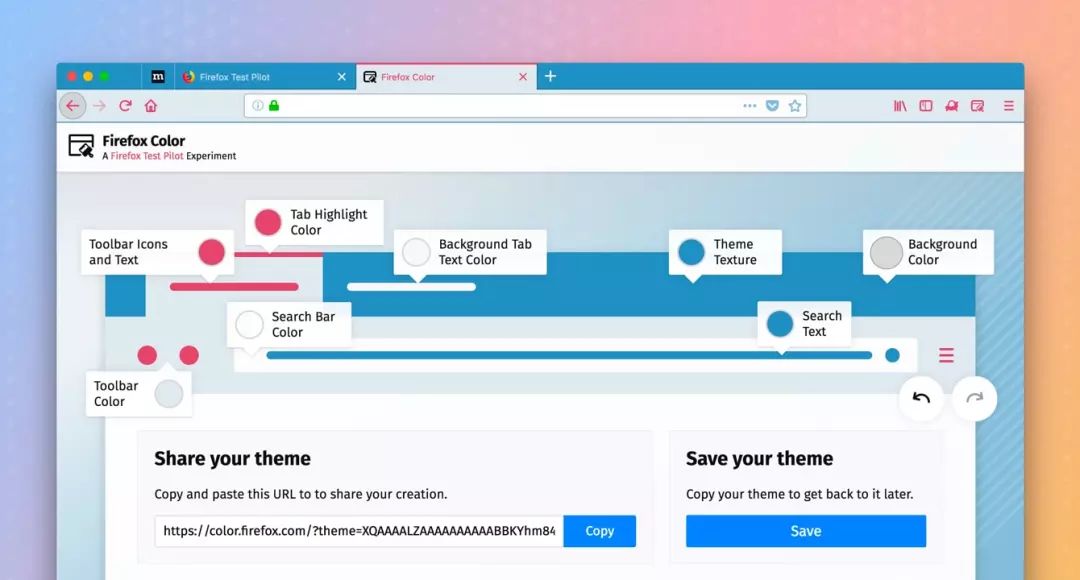 Mozilla 在本周二释出了 Firefox 的抢先测试版本,加入了两个新的扩展功能:Color 和 Side View 。Color 是一个自定义浏览器外观的功能,允许用户更改背景、文本、图标和工具栏的颜色。保存的配色方案还可以与他人进行分享,且自带一系列的颜色主题可供选择。