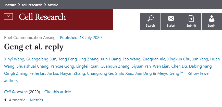 附:耿美玉团队在 Cell Research 发表了一篇题为 Geng et al. reply 的短篇通讯文章回应饶毅文章全文翻译: