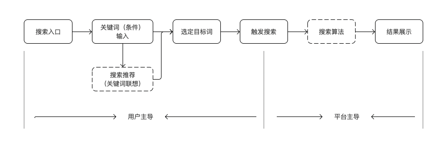 • 前半程是用户主导,找到搜索入口,根据个人诉求输入关键词;