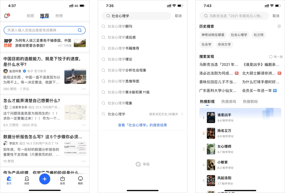 综合来看,知乎8.0版本,强化首页搜索入口,给用户更加直观的个性化搜索体验,也通过更多的内容展示机会,确保了内容的触达效率。
