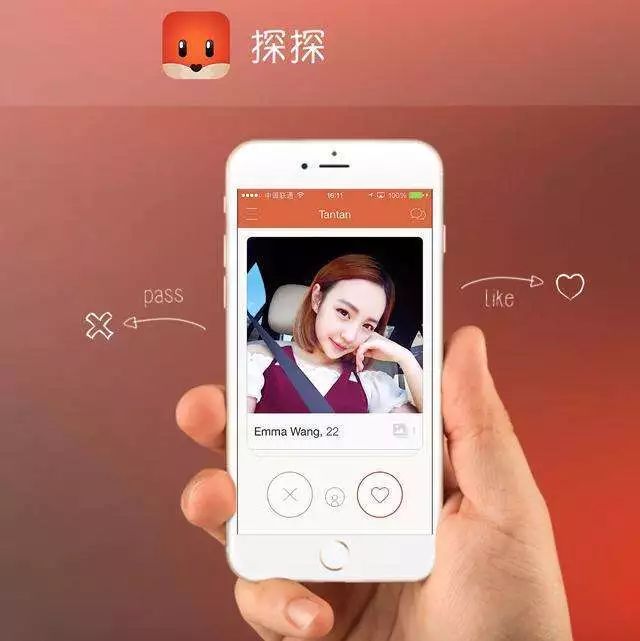 2014年6月,仿照国外陌生人社交应用Tinder的探探上线,这是一个基于大数据智能推荐、全新互动模式的社交App,会根据用户之间的共同兴趣爱好、共同好友和曾经共同经过的地点等信息,筛选出相对匹配的人推送。用户左滑无感,右滑喜欢,简单快捷。对于很多宅男宅女、不善言辞的人来说,探探无疑击中了痛点,赢得了大量用户的喜爱。
