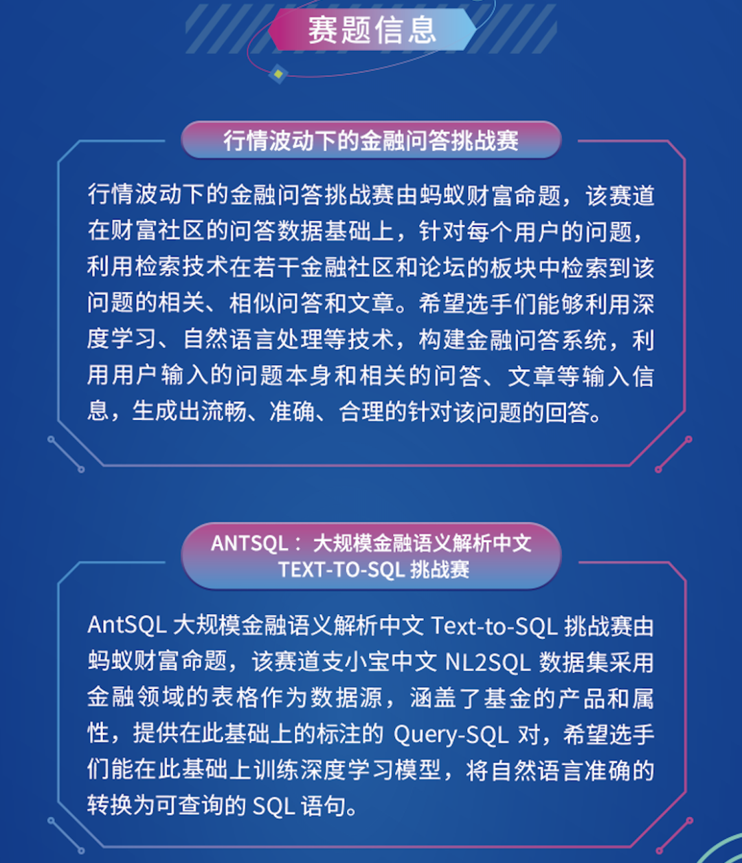 智慧金融高速发展,智能投顾、智能客服等业务为用户提供了千人千面的信息服务。此次黑客松两大赛题围绕这些业务背后的核心技术能力展开设计,即智能问答和信息检索。