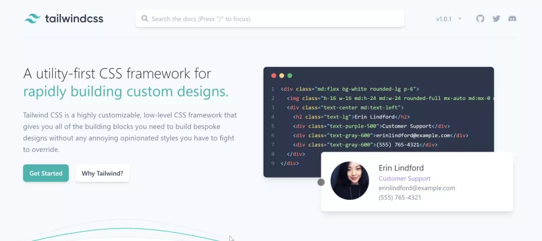 Tailwind 正式版的新主页内容更完善,让新人更容易了解 Tailwind,更快上手。学习使用 Tailwind 的一大障碍就是从大家习惯的预定义组件(如 Bootstrap)转向功能组件类的思想,新主页的引导和动画给出了很好的入门说明。