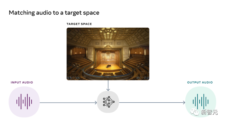 首先,视觉声觉匹配模型可将视频中的音频转换为目标环境中的声觉效果,给定目标环境的图像和源音频的波形,模型就可以重新合成音频以匹配目标房间的声学。