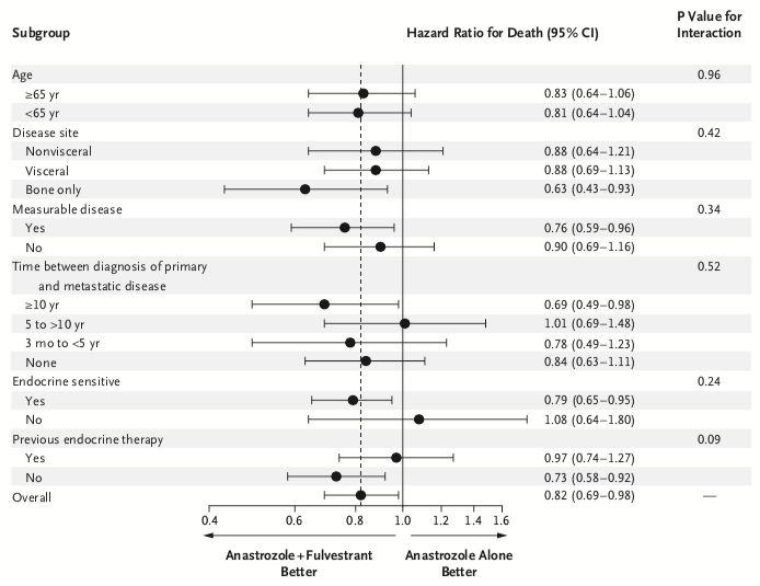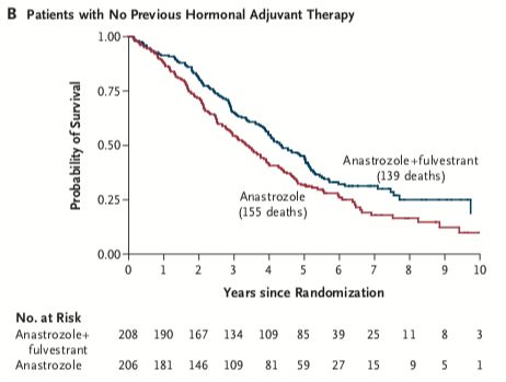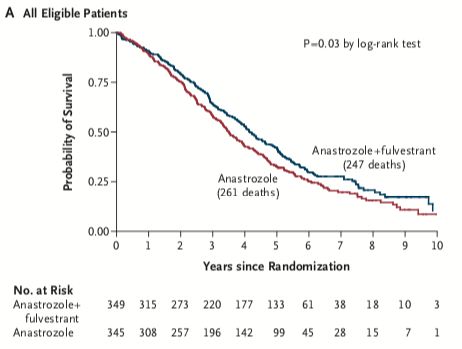 Mehta RS, Barlow WE, Albain KS, et al. Overall Survival with Fulvestrant plus Anastrozole in Metastatic Breast Cancer[J]. N Engl J Med. 2019;380(13):1226-1234.