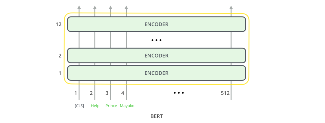 就像 Transformer 中普通的 Encoder 一样,BERT 将一串单词作为输入,这些单词在 Encoder 的栈中不断向上流动。每一层都会经过 Self Attention 层,并通过一个前馈神经网络,然后将结果传给下一个 Encoder。