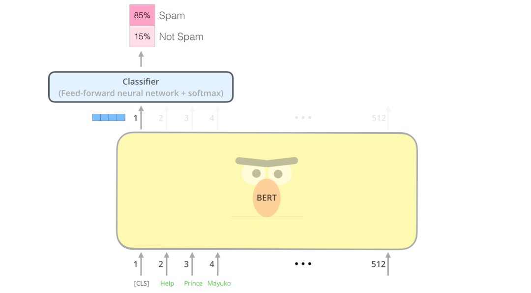 现在,OpenAI Transformer 已经经过了预训练,它的网络层经过调整,可以很好地处理文本语言,我们可以开始使用它来处理下游任务。让我们先看下句子分类任务(把电子邮件分类为 ”垃圾邮件“ 或者 ”非垃圾邮件“):