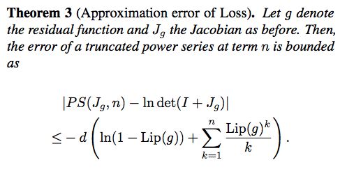 图 4:本文提出的对数行列式估计量的偏差和标准差随幂级数项数量增加而发生的变化。方差是由随机 trace estimator 决定的。