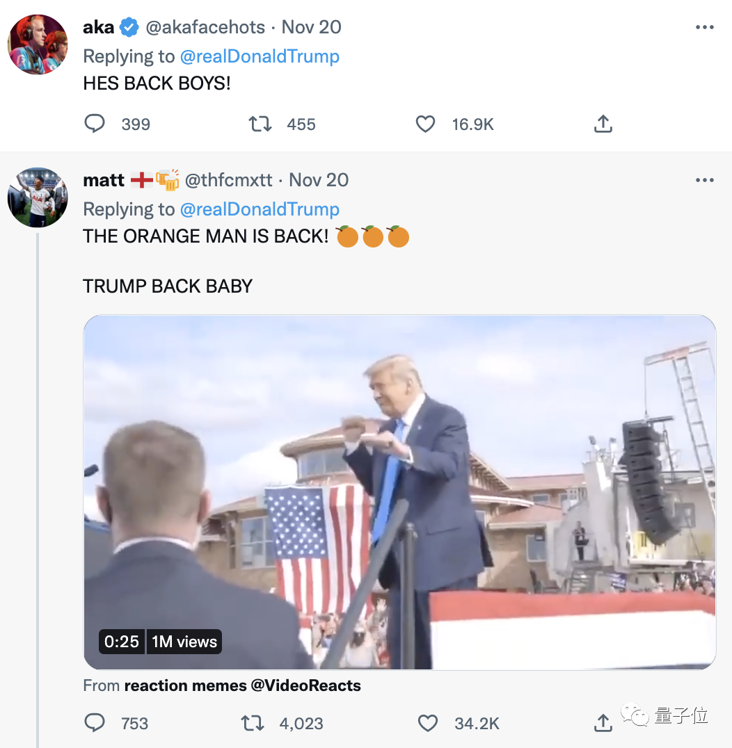 但是网友们却很兴奋,不少人跑到特朗普目前最后一条推特下面留言。