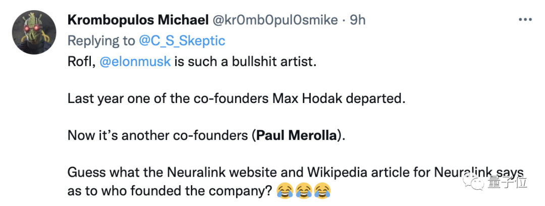 除此之外,另一位出走的联合创始人那边,也被曝出来对Neuralink并不利好的消息。