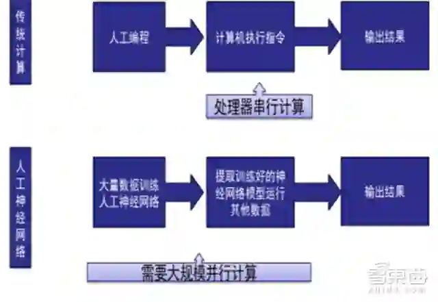 深度学习与传统计算模式不同,最大的区别是不以执行指令为目的,但需要大量并行计算资源,因此需要专门的计算芯片来加速计算。实际上无论是前端智能摄像头还是后端结构化服务器,其额外增加的硬件资源核心目的实质上都是为了增加计算能力。