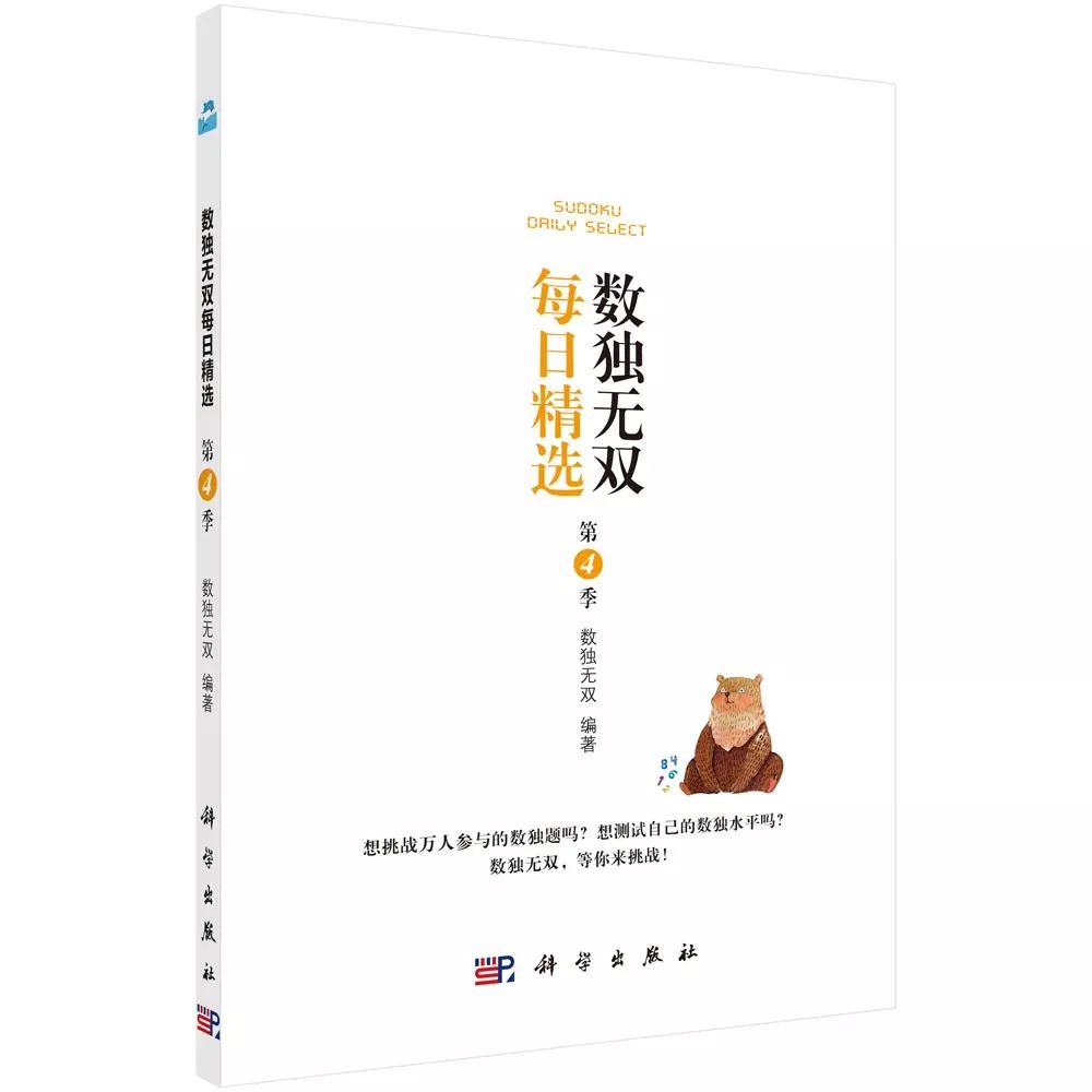 2017年底,"数独无双"推出微信小程序"每日一题",每天推送三道数独题(初级、中级、高级),题目质量高,形式新颖,受到了广大关注公众号的数独爱好者的欢迎。每天都有上千人参与每日一题的排行,在第二台会给出前一天高级题的详解说明,帮助爱好者学习解法,提升解题技能。为了让更多的数独爱好者了解"数独无双",享受高质量数独题带来的解题感受,我们将每日一题进行归纳和整理,策划了《2018数独无双每日精选》(第一季、第二季、第三季、第四季)和《2018数独无双年度精选》系列图书。《2018数独无双每日精选(第四季)》从2018年10月1日至2018年12月31日,初级、中级、高级共计270道数独题中,精选出90道质量好、逻辑性强、爱好者评价高的题,其中初级30道、中级30道、高级30道,并给出30道高级题的详解。