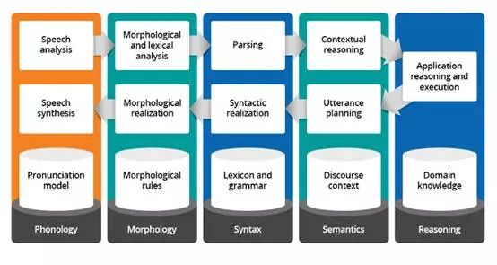 不仅如此,NLU会深刻理解每个单词,试图理解它是一个名词还是动词,什么是时态(过去或未来)等。这个过程被定义为POS:词性标注部分(Part Of Speech Tagging)。NLP具有内置的词典和一套与语法预编码相关的协议,这些协议被预编码到它们的系统中,并在处理自然语言数据集时使用它,从而在NLP系统处理人类语音时,编译所说的内容。