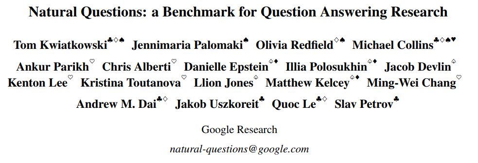 论文:Natural Questions: a Benchmark for Question Answering Research