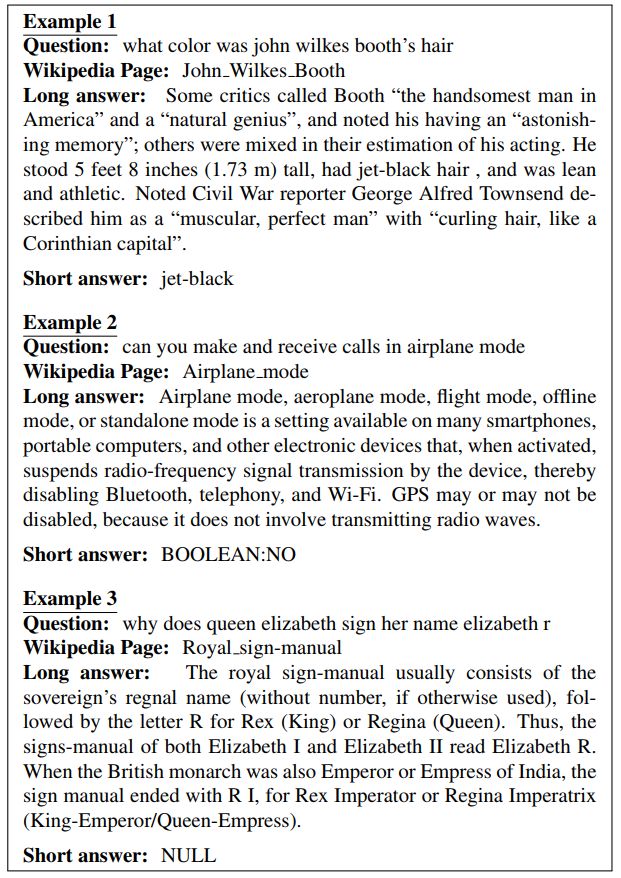 谷歌提出自然问答数据集 Natural Questions(NQ)
