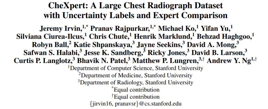论文:CheXpert: A Large Chest Radiograph Dataset with Uncertainty Labels and Expert Comparison