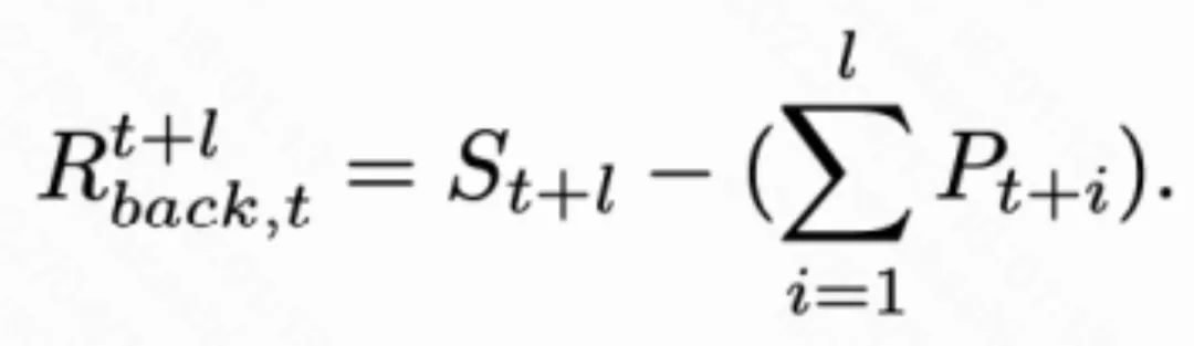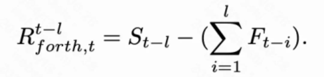 我们进一步发现,时间残差图具备累积转移特性,即当前时刻到任意时刻的时间转移都可以用这段时间内每个相邻帧的时序残差图来累积得到。于是,自然地将传播过程进阶扩展到任意的时间顺序上。下式展示了将第t-l个时刻的结果传递到当前时刻: