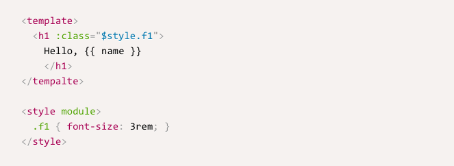CSS Modules(https://github.com/css-modules/css-modules)是另外一种实现模块化和局部 CSS 的流行的做法。在 Vue 中使用 CSS Modules只需要给 `style` 标签添加 `module` 属性即可:
