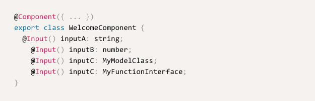 Angular 2+ 主要使用 TypeScript 来编写代码,因此,对输入数据的类型校验就交给 TypeScript 了。你只需要使用注解给输入属性指定类型就行。