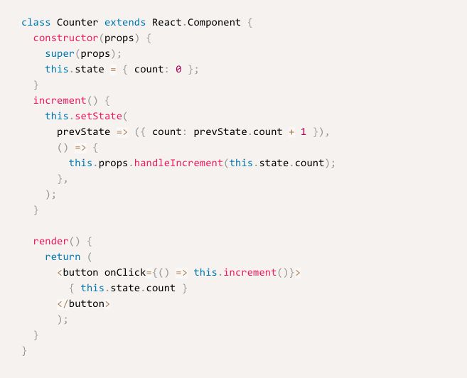 React 实现自定义事件的方式有点不同,它不是把自定义事件往上抛出,而是让父组件将事件处理器作为 props 传递给子组件,然后等待子组件在合适的时机调用。