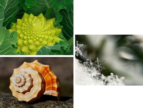 具有分形图案的西蓝花,海螺和雪花。图片来源:Pixabay