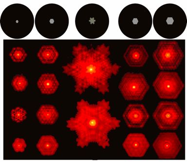 在观察到光分形后,福布斯和他的同事们还成功通过改变曲面镜的曲率,调节对激光的缩放效果,制造出几种具有不同花样的光分形图案。