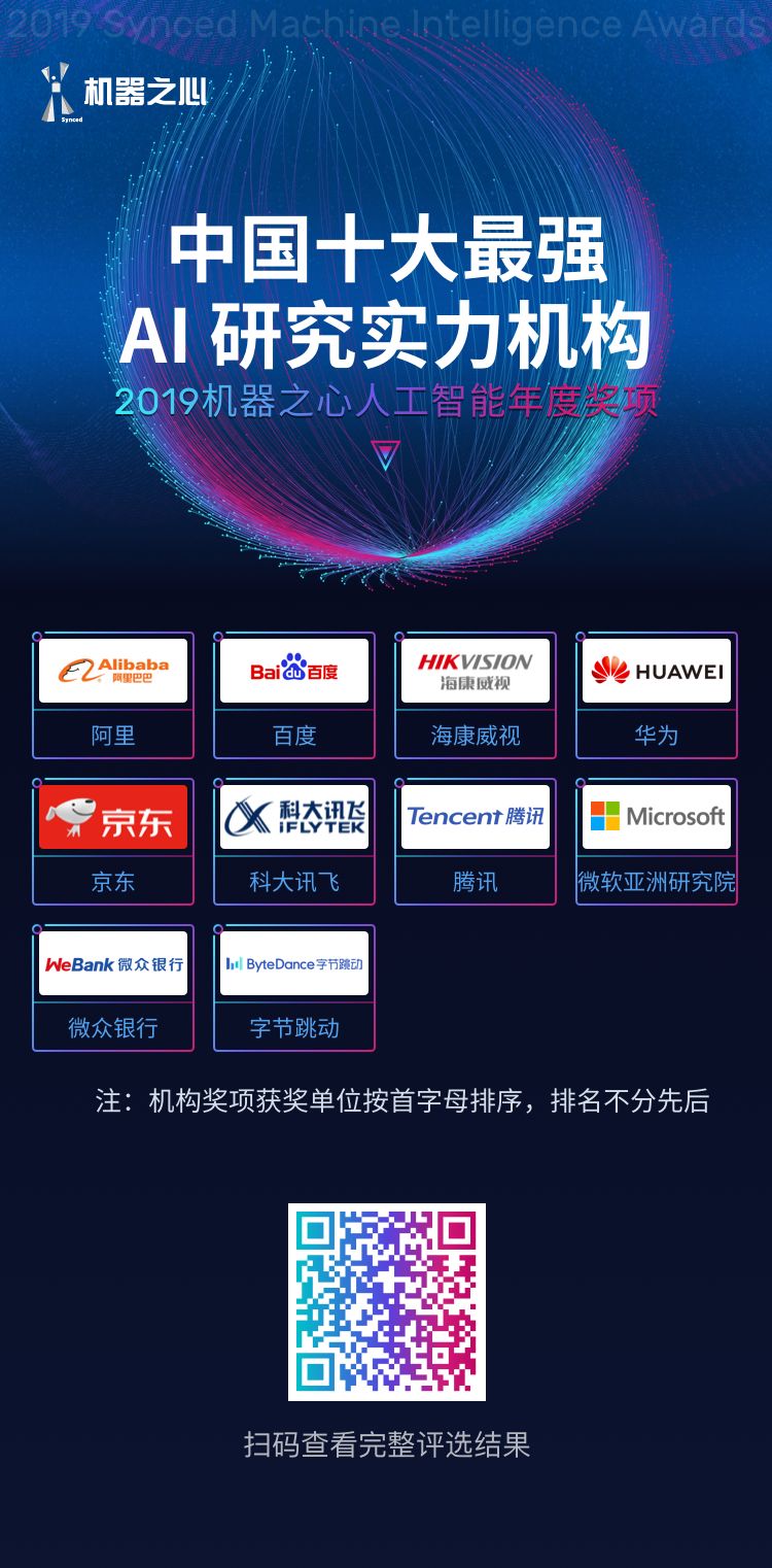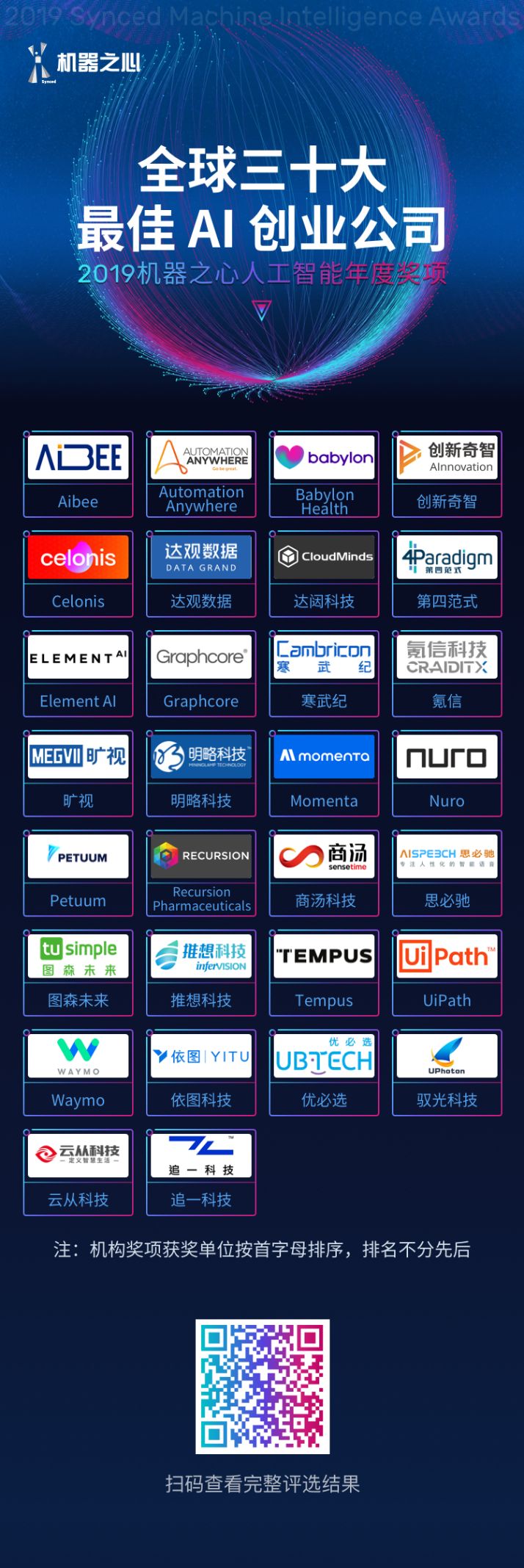 2019机器之心人工智能年度奖项正式公布:关注创业先锋,聚焦产品案例