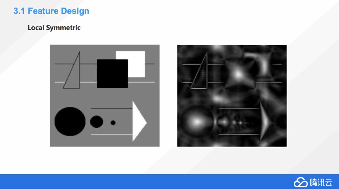 这样情况下大家还想出另外一个方法叫 Local Symmetry,这种方法是看对象重心点,利用重心点去代表着这个图像的一些特征。