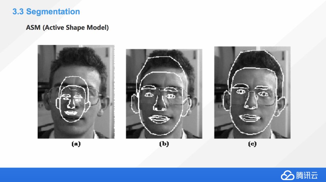 ASM,中文名叫可变模板匹配,或者叫主观形状模型。这个翻译听起来都怪怪的,其实很好理解,它是对人脸上的一些特征进行提取,采用的方式是在人脸上寻找一些边角的地方进行绘点,一般绘制大概 68 个关键特征点。然后利用这些特征点,我们去抽取一个原始的模型出来。