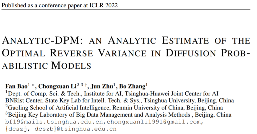 论文 1:ANALYTIC-DPM: AN ANALYTIC ESTIMATE OF THE OPTIMAL REVERSE VARIANCE IN DIFFUSION PROBABILISTIC MODELS