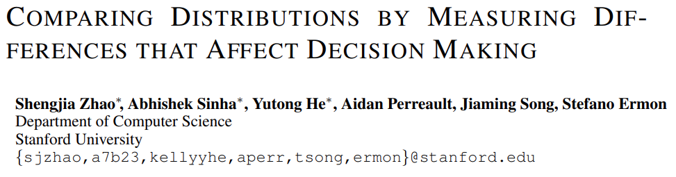 获奖理由:该研究提出了一类新的差异(discrepancy),可以根据决策任务的最佳损失比较两个概率分布。通过适当地选择决策任务,该方法泛化了 Jensen-Shannon 散度(divergence)和最大平均差异族。与各种基准上的竞争基线相比,该方法实现了卓越的测试性能,并且具有广阔的应用前景,可用于了解气候变化对不同社会和经济活动的影响、评估样本质量以及选择针对不同决策任务的特征。评审委员会认为该论文具有非凡的实验意义,因为该方法允许用户在通过决策损失比较分布时直接指定其偏好,这意味着实际应用将有更高的可解释性。