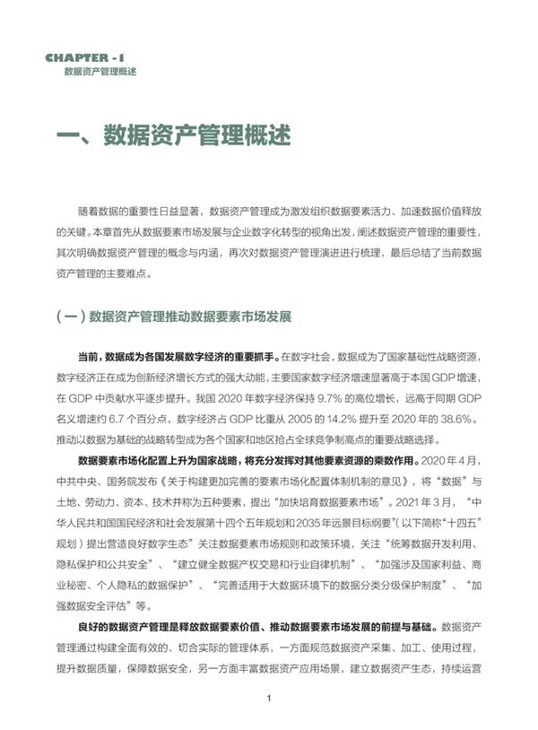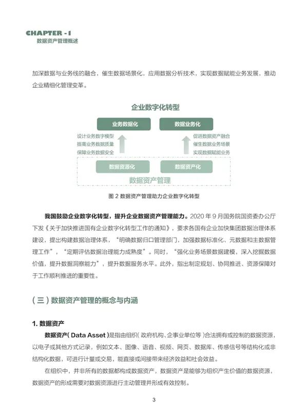 经过多年发展,我国数据资产管理逐步进入深化落地时期。政府部门、金融机构、通信运营商、互联网企业等纷纷提出数字化转型路线,提出了数据资产管理框架,在数据资源化方面积累了实践经验,探索开展数据流通、价值评估、资产运营等数据资产化工作。