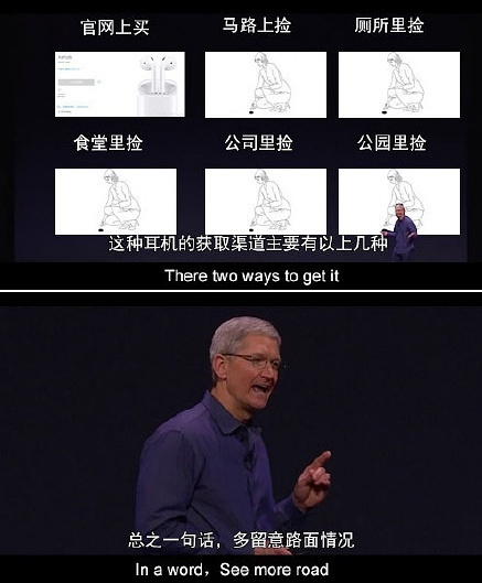 同样的走红套路在AirPods身上上演。它一方面出现在体育运动员、好莱坞明星们的街拍造型里,成为新的时尚单品;另一方面又激发了缺德网友的创作欲,社交网络上遍地是有关AirPods的梗图。