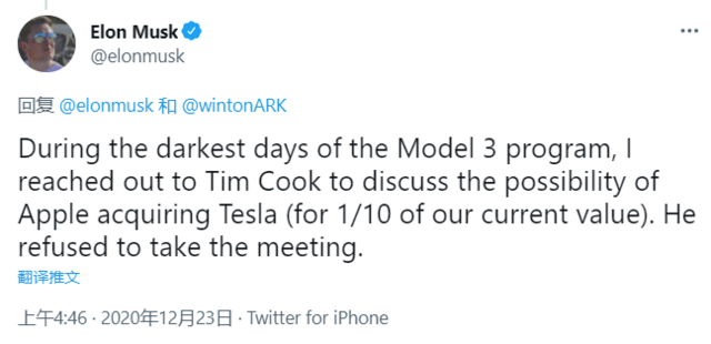 2016年,在特斯拉深陷财务危机时,马斯克曾跪求苹果包养,库克压根没搭理他。