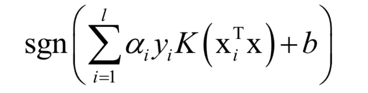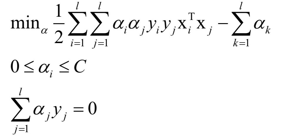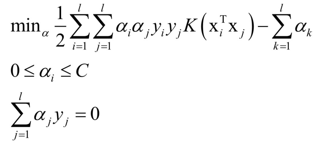其中b通过KKT条件求出。如果使用正定核,这个问题也是凸优化问题。求解采用了SMO算法,这是一种分治法,每次挑选出两个变量进行优化,其他变量保持不动。选择优化变量的依据是KKT条件,对这两个变量的优化是一个带等式和不等式约束的二次函数极值问题,可以直接得到公式解。另外,这个子问题同样是一个凸优化问题。