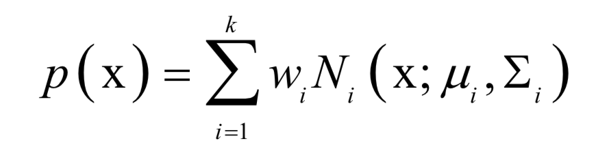 其中x为随机向量,k为高斯分布的个数,wi为权重,为高斯分布的均值向量,