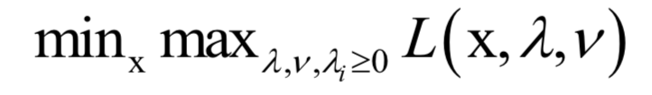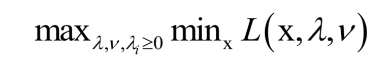 即先固定住x,调整拉格朗日乘子变量,让函数L取极大值;然后控制变量x,让目标函数取极小值。原问题与我们要优化的原始问题是等价的。