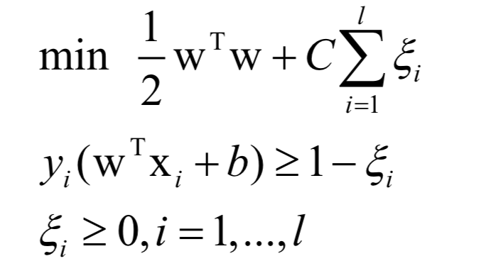 支持向量机的核心思想是最大化分类间隔。简单的支持向量机就是让分类间隔最大化的线性分类器,找到多维空间中的一个超平面。它在训练是求解的问题为: