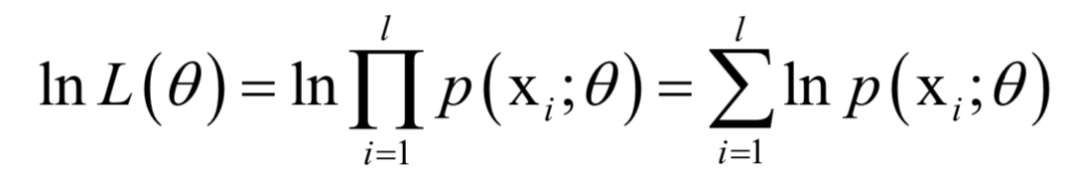 乘积求导不易处理,因此我们对该函数取对数,得到对数似然函数: