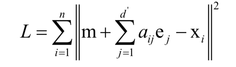 结果向量的维数小于原始向量的维数。降维要确保的是在低维空间中的投影能很好的近似表达原始向量,即重构误差最小化:
