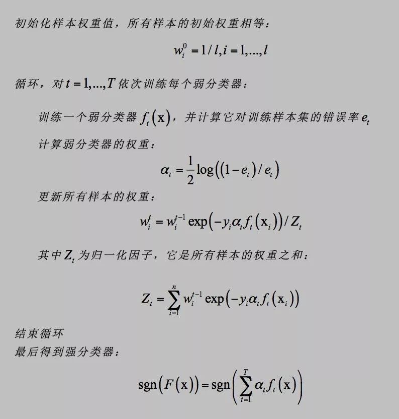 求解时采用了分阶段优化,先得到弱分类器,然后确定弱分类器的权重值,这就是弱分类器,弱分类器权重的来历。除了离散型AdaBoost之外,从广义加法模型还可以导出其他几种AdaBoost算法,分别是实数型AdaBoost,Gentle型AdaBoost,Logit型AdaBoost,它们使用了不同的损失函数和最优化算法。