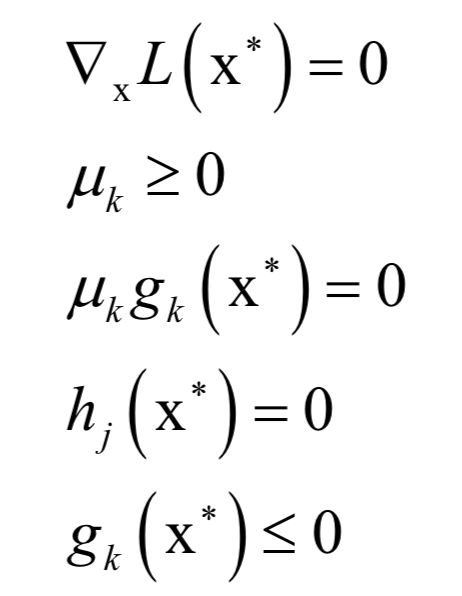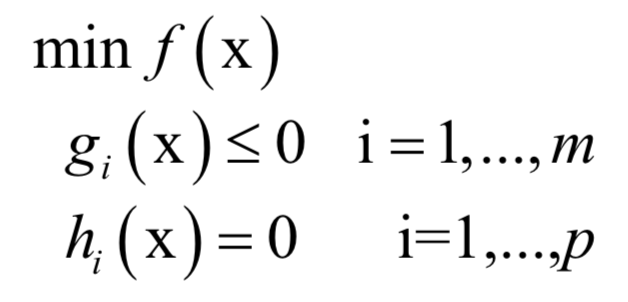 KKT条件是拉格朗日乘数法的推广,用于求解既带有等式约束,又带有不等式约束的函数极值。对于如下优化问题: