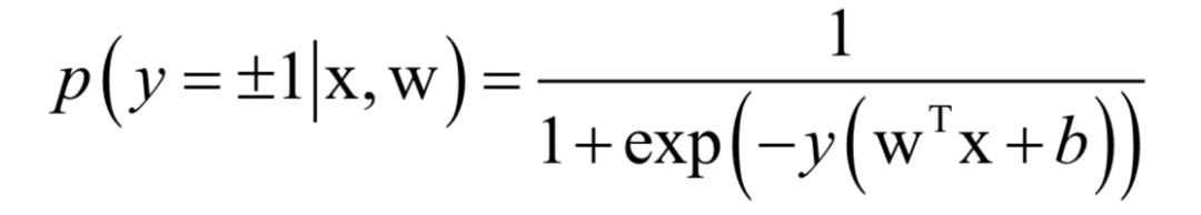 logistic回归是一种二分类算法,直接为样本估计出它属于正负样本的概率。先将向量进行线性加权,然后计算logistic函数,可以得到[0,1]之间的概率值,它表示样本x属于正样本的概率: