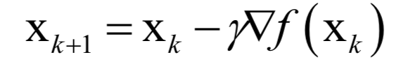 梯度下降法沿着梯度的反方向进行搜索,利用了函数的一阶导数信息。梯度下降法的迭代公式为: