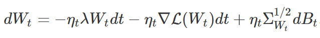 SGD 是带有噪声项的梯度下降,它具有的连续时间近似可以描述为以下扩散过程: