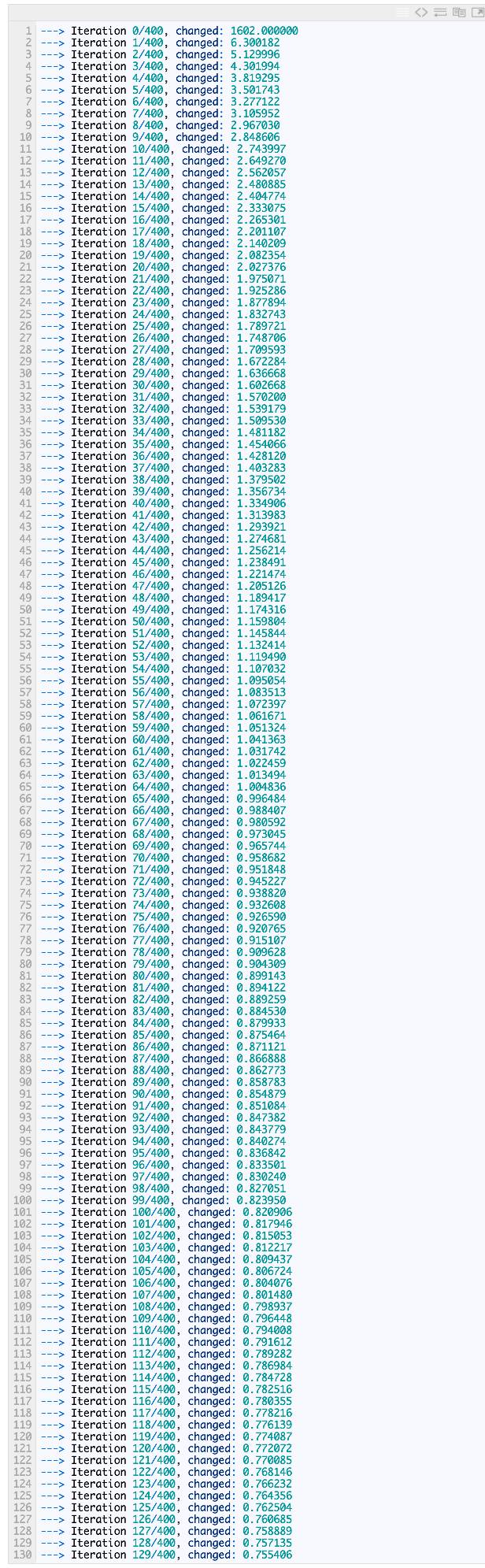 print "---> Iteration %d/%d, changed: %f" % (iter, max_iter, changed)