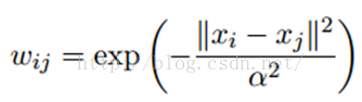 LP算法是基于Graph的,因此我们需要先构建一个图。我们为所有的数据构建一个图,图的节点就是一个数据点,包含labeled和unlabeled的数据。节点i和节点j的边表示他们的相似度。这个图的构建方法有很多,这里我们假设这个图是全连接的,节点i和节点j的边权重为: