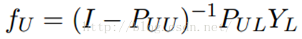 所以我们也可以直接这样求解,以获得最终的YU。但是在实际的应用过程中,由于矩阵求逆需要O(n3)的复杂度,所以如果unlabeled数据非常多,那么I – PUU矩阵的求逆将会非常耗时,因此这时候一般选择迭代算法来实现。